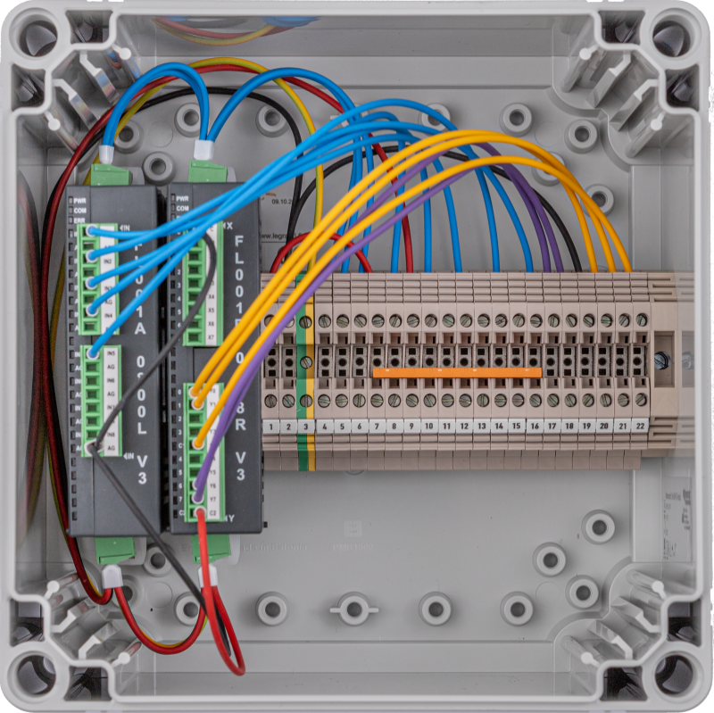 Masterwatch Ultra NAV IO-modul används för att läsa tryckgivare eller ventilgränslägen i en nödlåda och vidarebefordrar status till Masterwatch Ultra. En tryckövervakare/tryckvakt kan övervaka upp till 20 IO-moduler per avdelning, vilket ger en centraliserad, effektiv hantering av alla nödlådor.